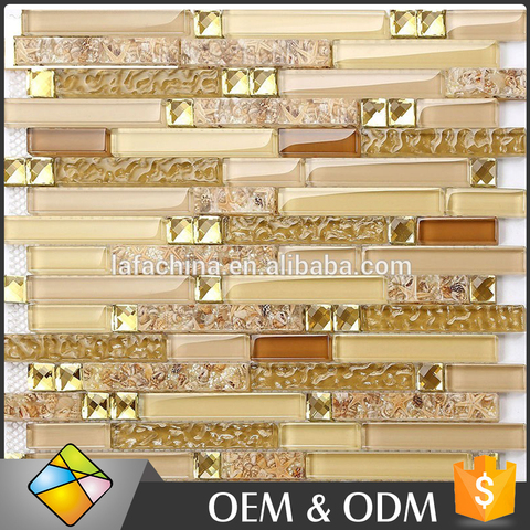 Alibabaa الصين بالجملة الشريط الذهبي كريستال بلاط زجاجي فسيفساء
